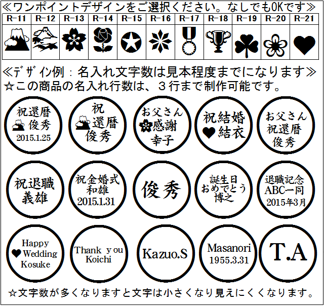 ※彫刻面が小さいため、文字数は少なめで3行までです。